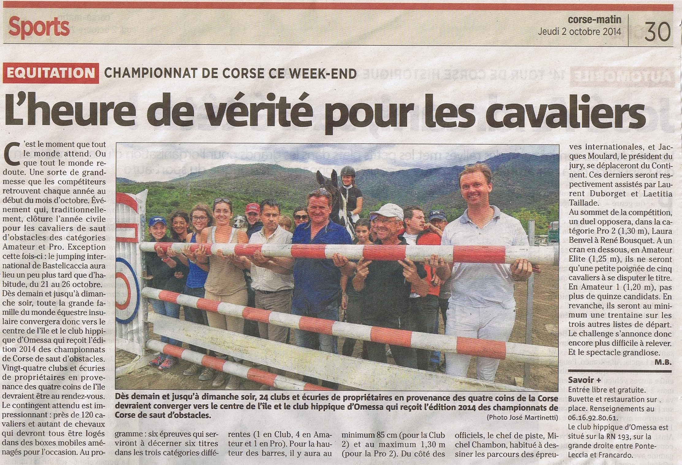 Championnat de Corse de Saut d'Obstacles prochainement à OmessaLundi 6 Octobre 2014